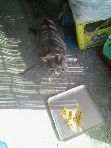 けど、やっぱりちょっと撫で撫でしたいなぁ・・・と思ったので、エサを食べている隙にちょっと頭を撫でたら、さすが野生の瞬発力、避けることも出来ないスピードで指先をひっかかれました。と言うか、爪がささりまして、なんだかまだちょっと痛い・・・