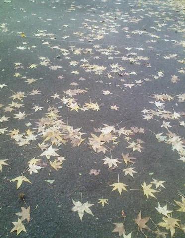 写真は木の葉がアスファルトにはりついて、まるで星の川を歩いているよう・・・ロ、ロマンチック。