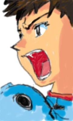 と言うわけで、今回は写真じゃなくて、携帯の画面に直接スタイラスでお絵かきです。一応、シンジ君ね。いや、面白かったなぁ・・・