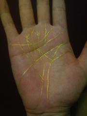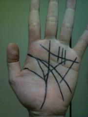 昔、ドラえもんで手相を塗りつぶすクリームと書き込む筆の秘密道具があって(かならずあたる手相セット)、それをヒントにして僕も実はやってたんです!