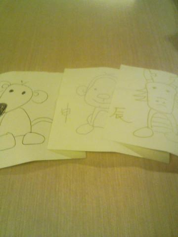 前みたいに色画用紙を使ってやってるとコストがかかりすぎるので、500枚で100円のメモ用紙(残念ながら色はとりあえず無視しておいて)に、五行のキラキラ色ボールペンで絵を描いてポケットに忍ばせることにしました。