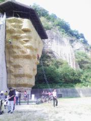 そうなんです、ブランコの近くにはクライミングの壁があるんです。
