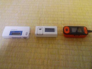 写真は手持ちのMP3プレイヤー(WMAも再生できるけど)です、オレンジが今回仲間入りした新顔ですね(4980円)。