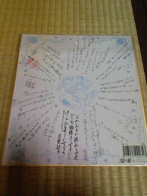 知り合いの娘さんが、東京の某プロダクションに入って女優さんを目指すと言うことで、何か応援が出来ないかと思い、寄せ書きを送りました(お別れカラオケの席上で)。