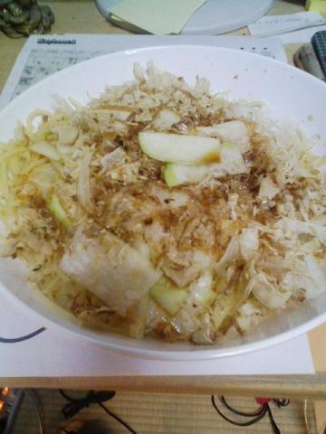 麺に大根を生でふりかけて更に削り節をかけて、ポン酢醤油をかけます。